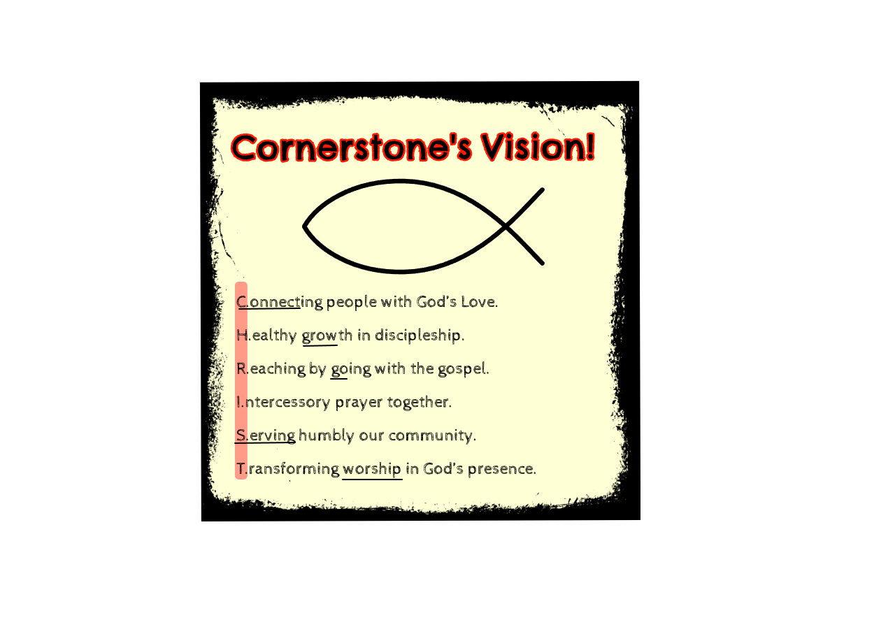 -"Christ love known at Cornerstone, Christ love shown by Cornerstone!"